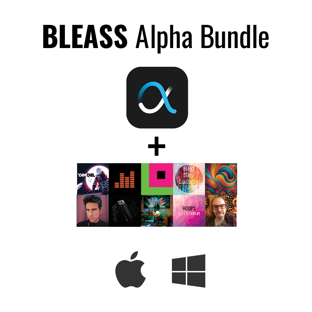 Get BLEASS Alpha Synthesizer + all 714 additional presets (10 preset packs: Red Sky Lullaby, Yawdel, Hoops Collection, Lily Jordy, The GarageBand Guide, Torley, Sound Of Izrael, MPE #1, The Sound Test Room)