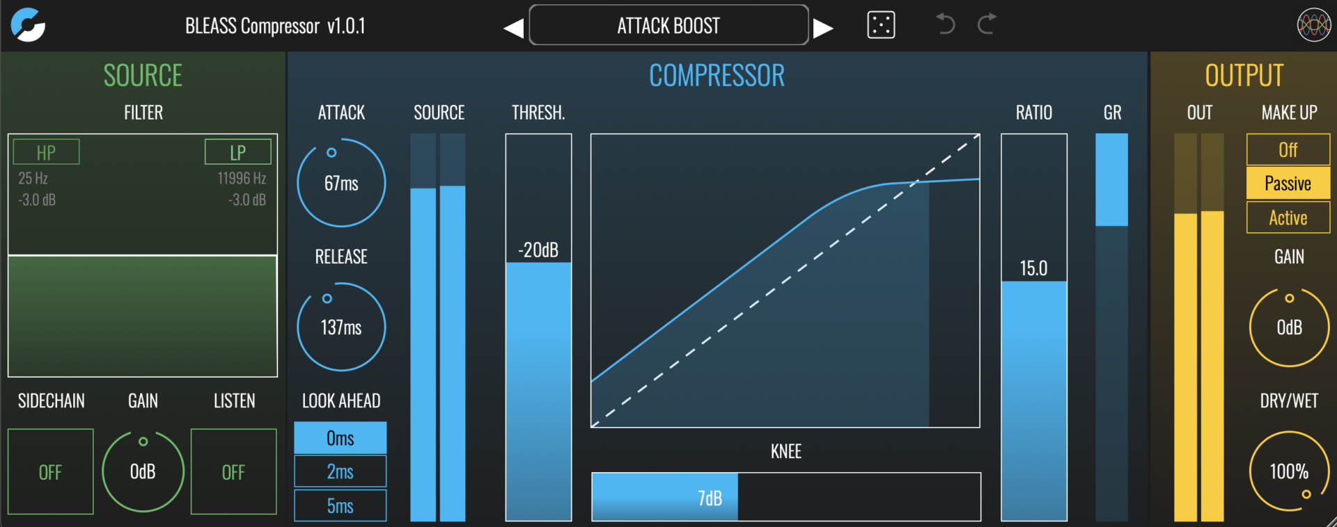 Start your vocal journey right with BLEASS Compressor, sculpting your input signal for flawless integration with BLEASS Vocal effects.