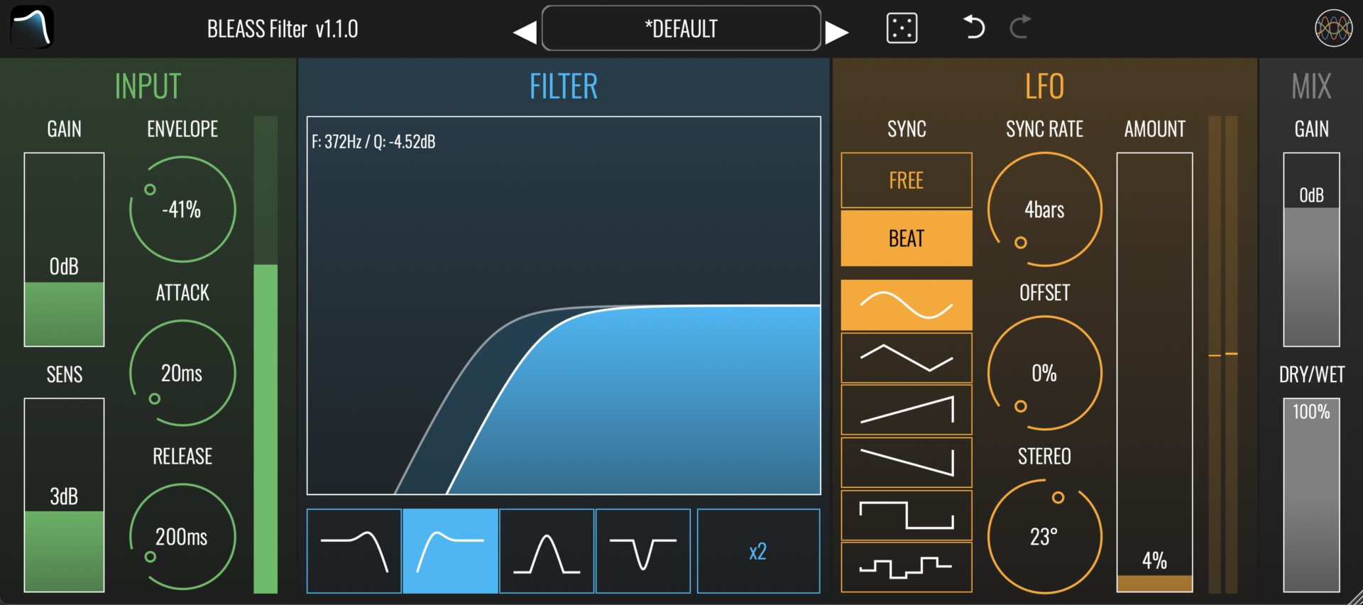 And when precision is paramount, rely on BLEASS Filter to dynamically sculpt your sound, effortlessly removing unwanted frequencies with its responsive envelope follower.